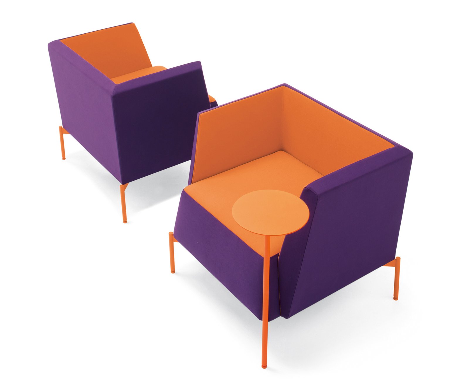 steel legs painted in 5 different finishes and with single- or two-tone upholstery.