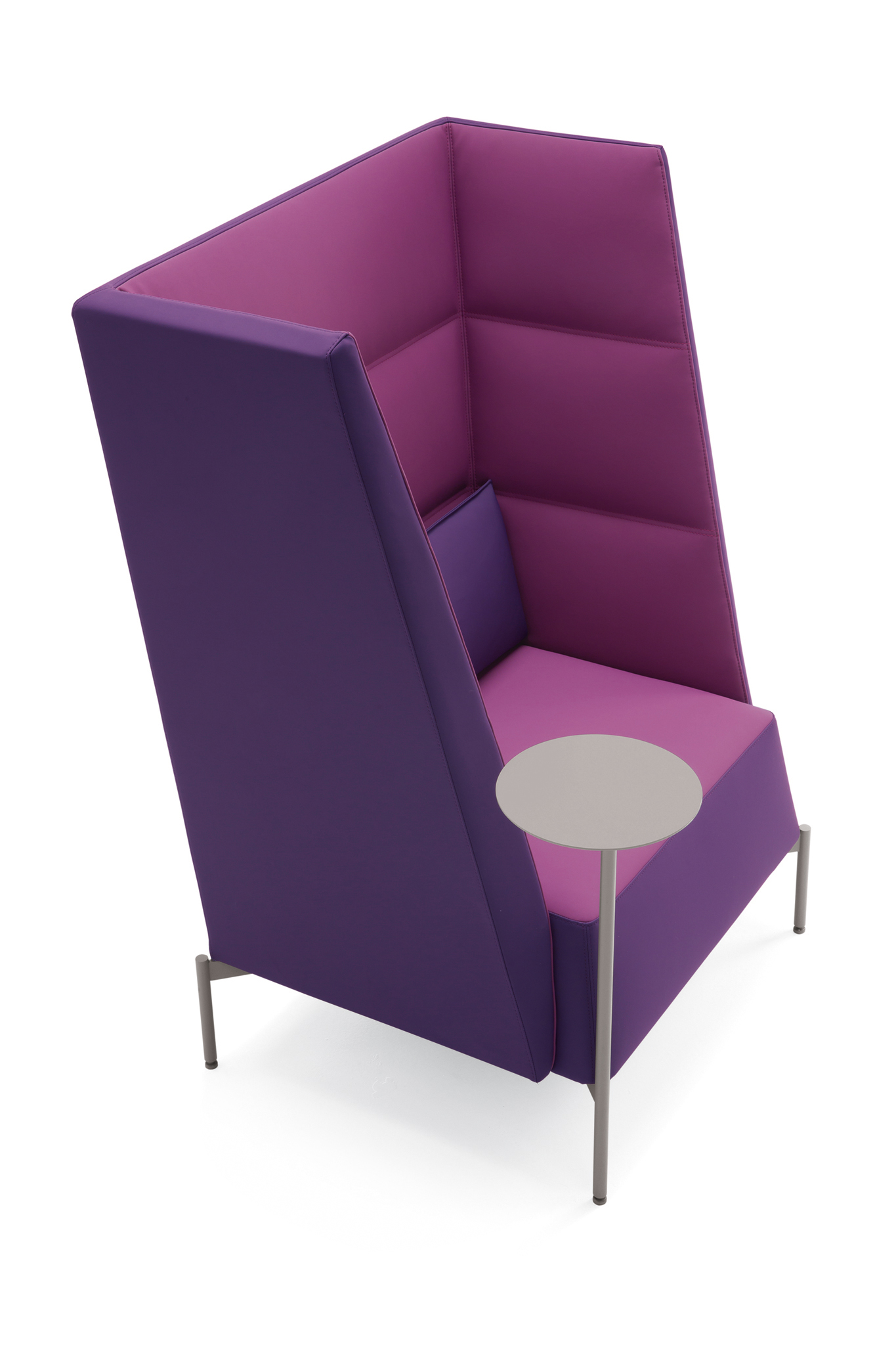 They are available with high, medium, or low backrests, and a rotating table matching the legs is available.