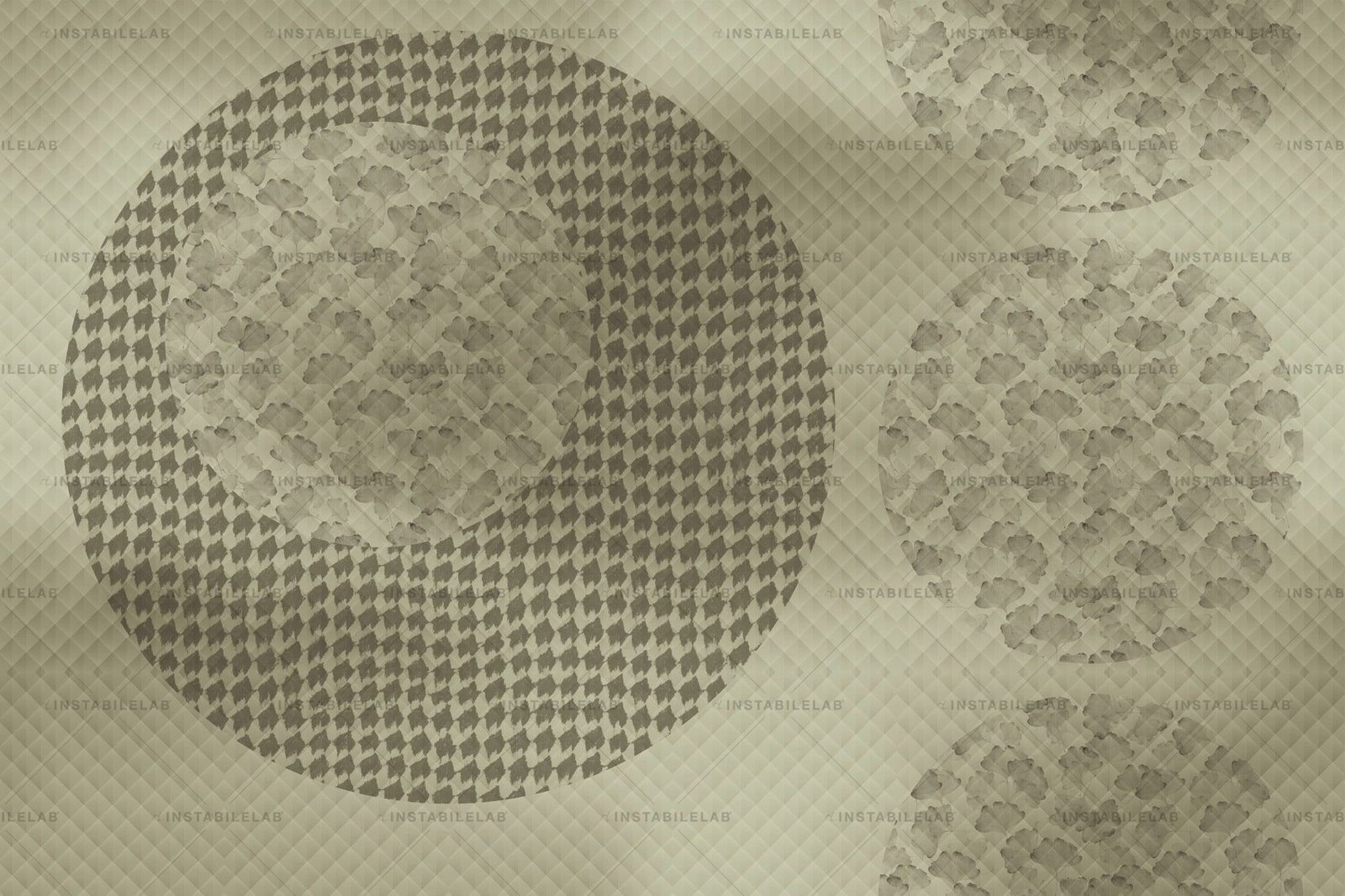 A wallpaper with ginkgo leaves enclosed within circles of different shapes and sizes.