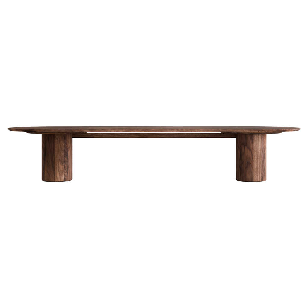 The top is made entirely from solid oak or walnut, and it rests on cylindrical legs – also crafted