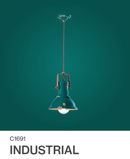 The metal grid protecting the lighting body makes the antique-effect ceramic lamp ideal for winter gardens or spaces evoking early 20th-century greenhouses.
